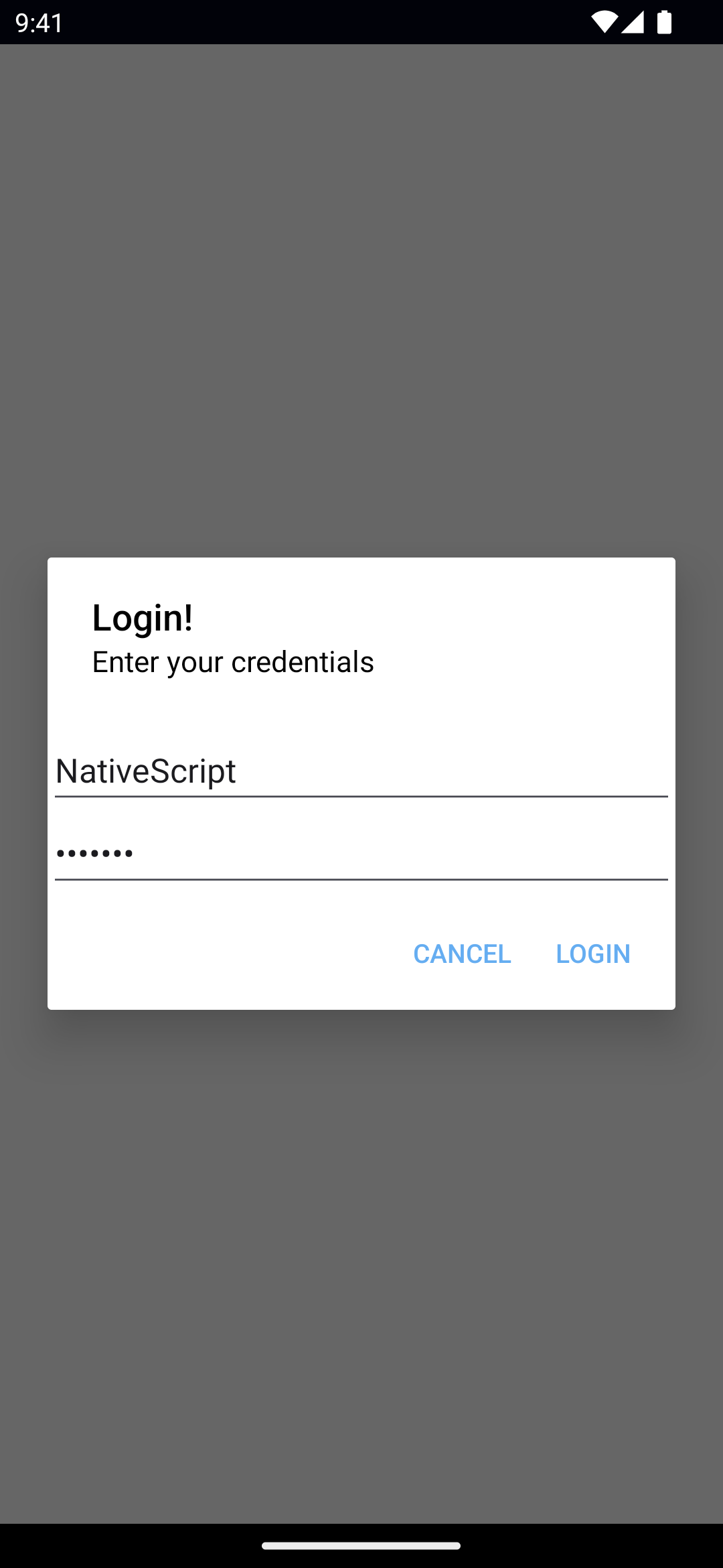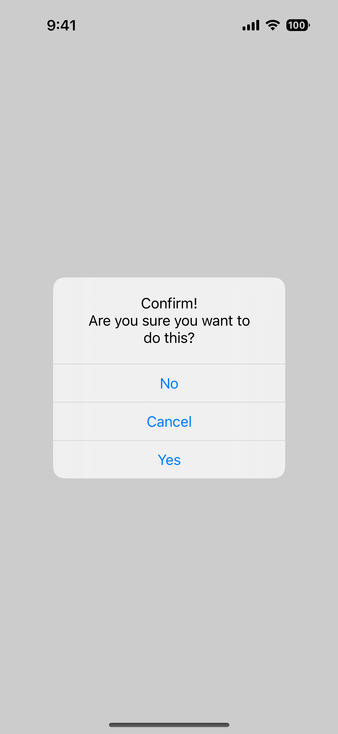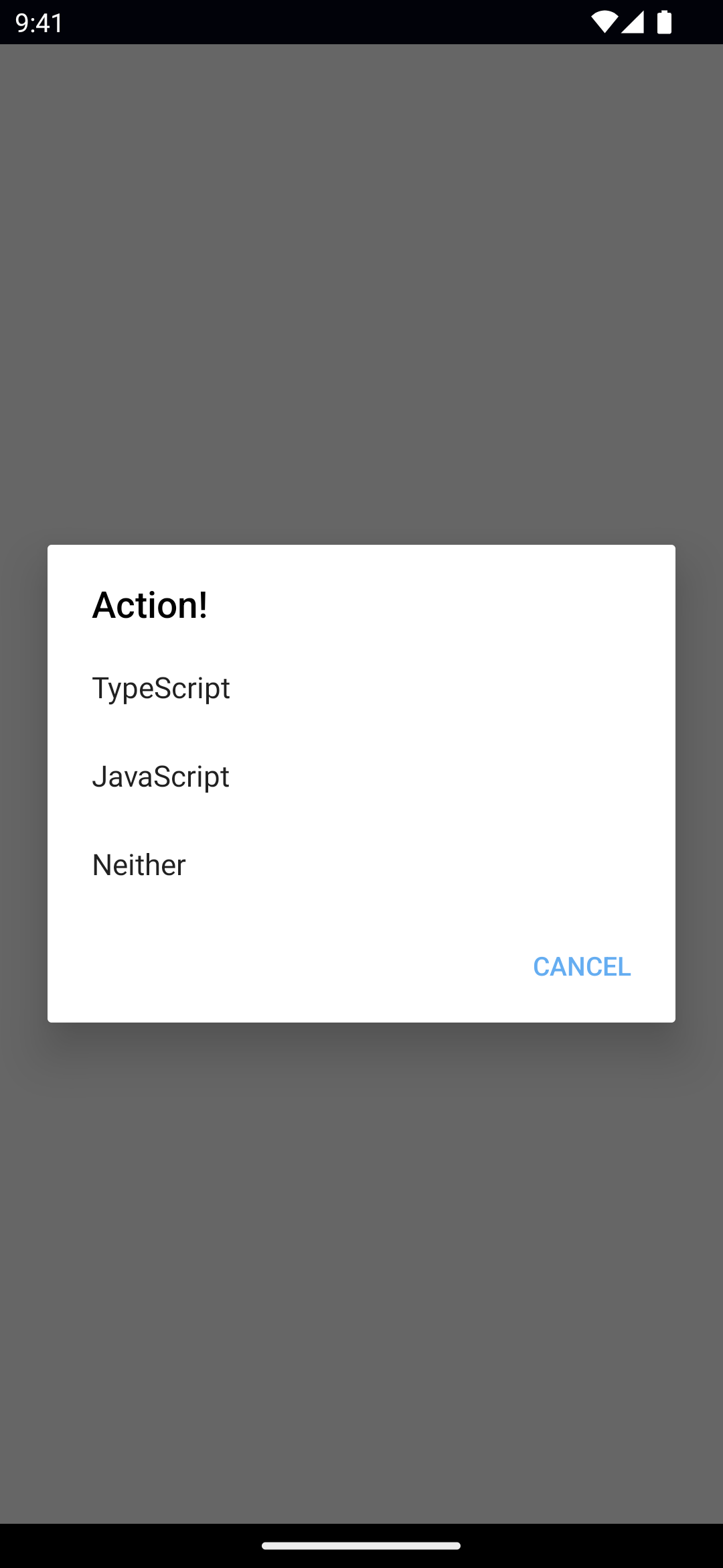 • cancelable (Android only): Sets if the dialog can be canceled by taping outside of the dialog.