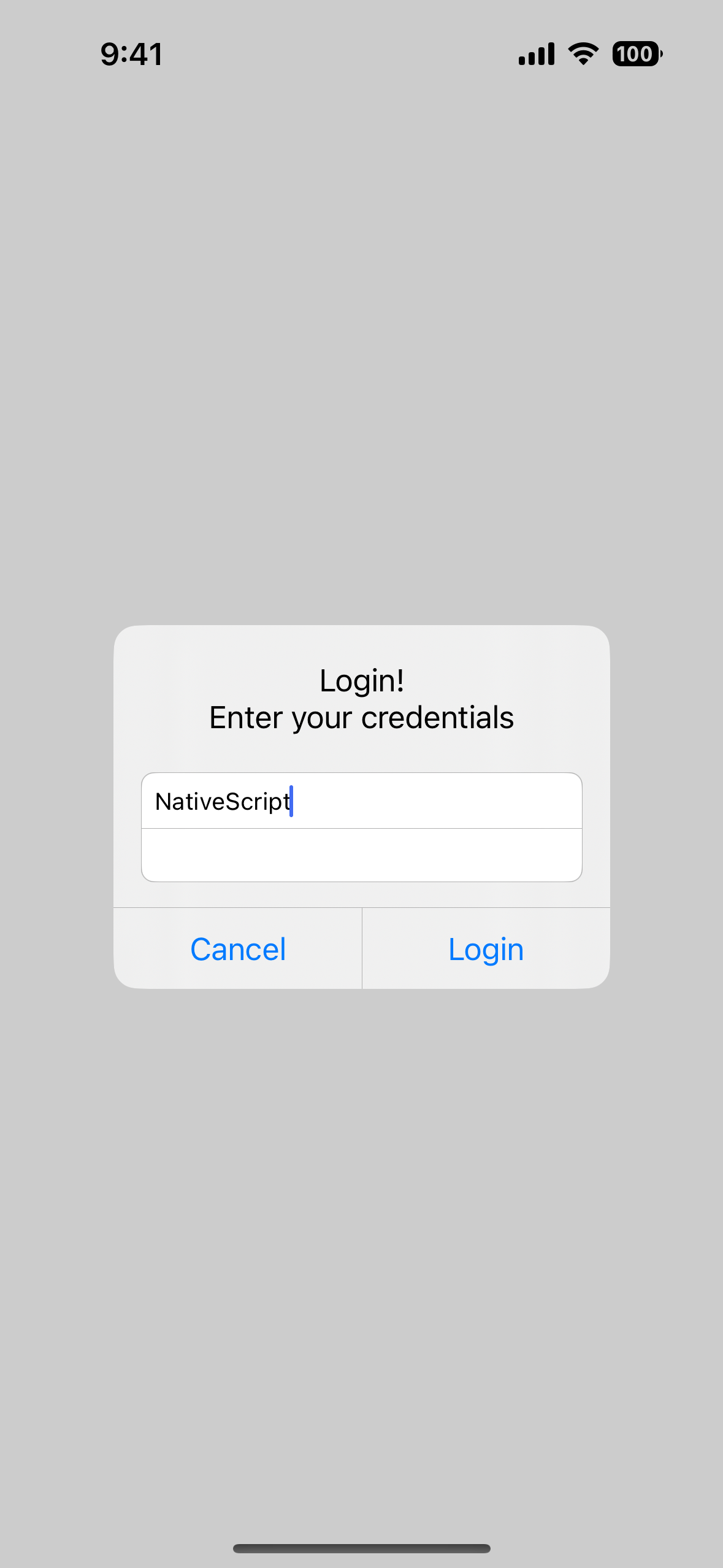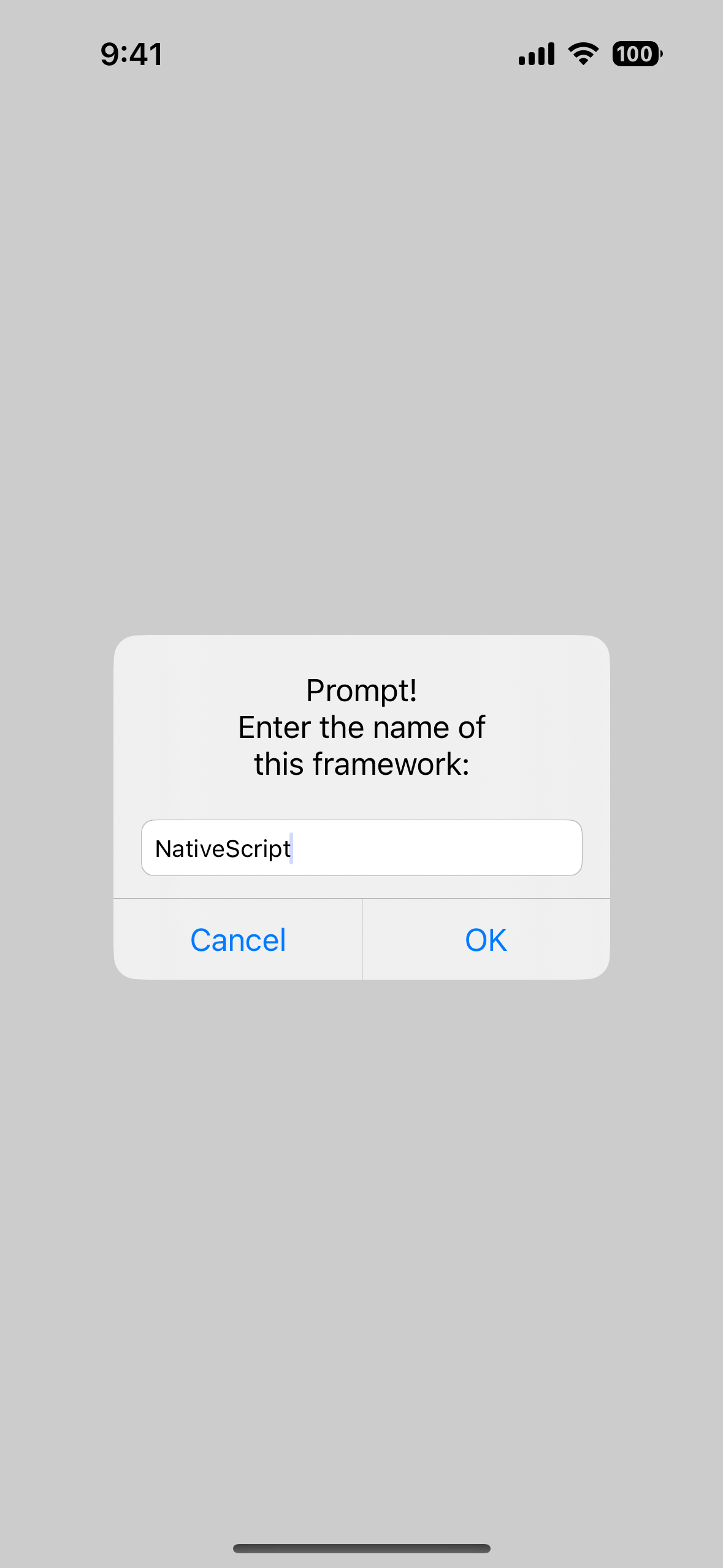 NativeScript offers various dialogs, available via the Dialogs import from @nativescript/core, or globally.